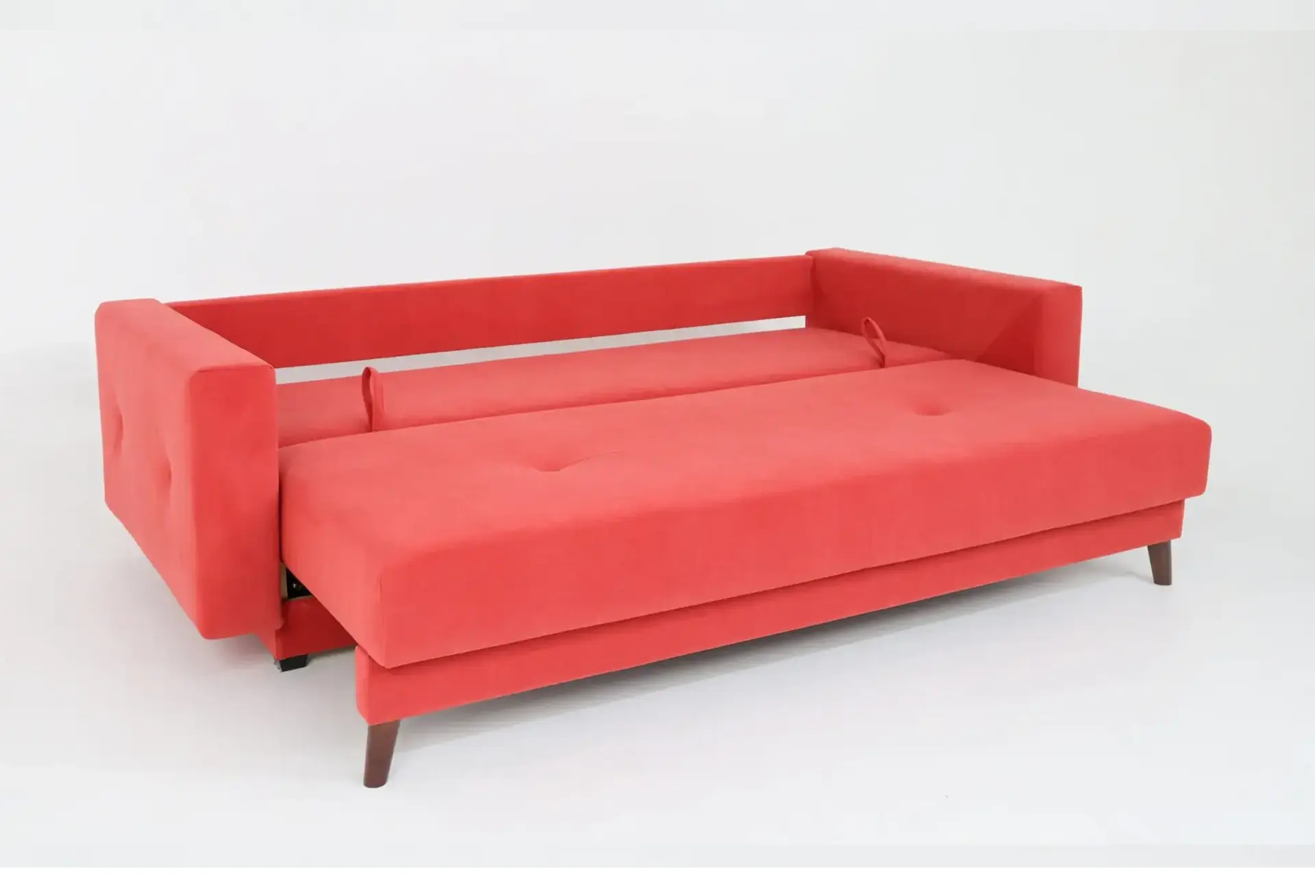 Диван оснащен механизмом трансформации «Еврокнижка тик-так», который прост и надежен в эксплуатации.