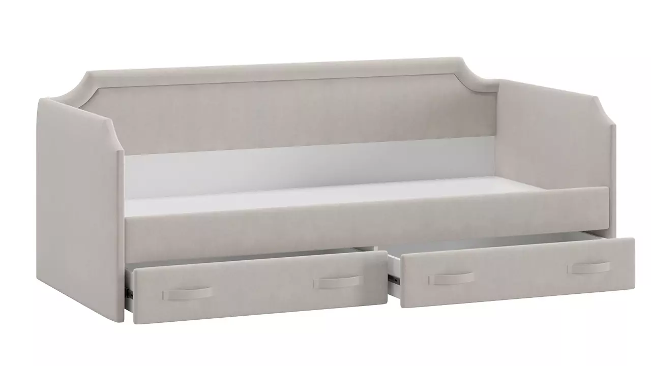 Благодаря своей конструкции кровать отлично разместится вдоль стены и сохранит полезное пространство комнаты. Днем это замечательный диванчик, а ночью – спальное место. Важной деталью комнаты является возможность рационального хранения, поэтому кровать оборудована двумя выдвижными ящиками, которые пригодятся для хранения игрушек и постельного белья.