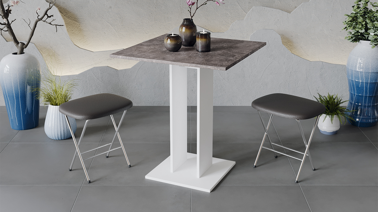 Имитирующая камень текстура в комбинации с белым цветом и композиция, сочетающая в себе древесные волокна создают потрясающий внешний вид. Белое подстолье придаёт лёгкость и невесомость, выгодно выделяя данную модель.