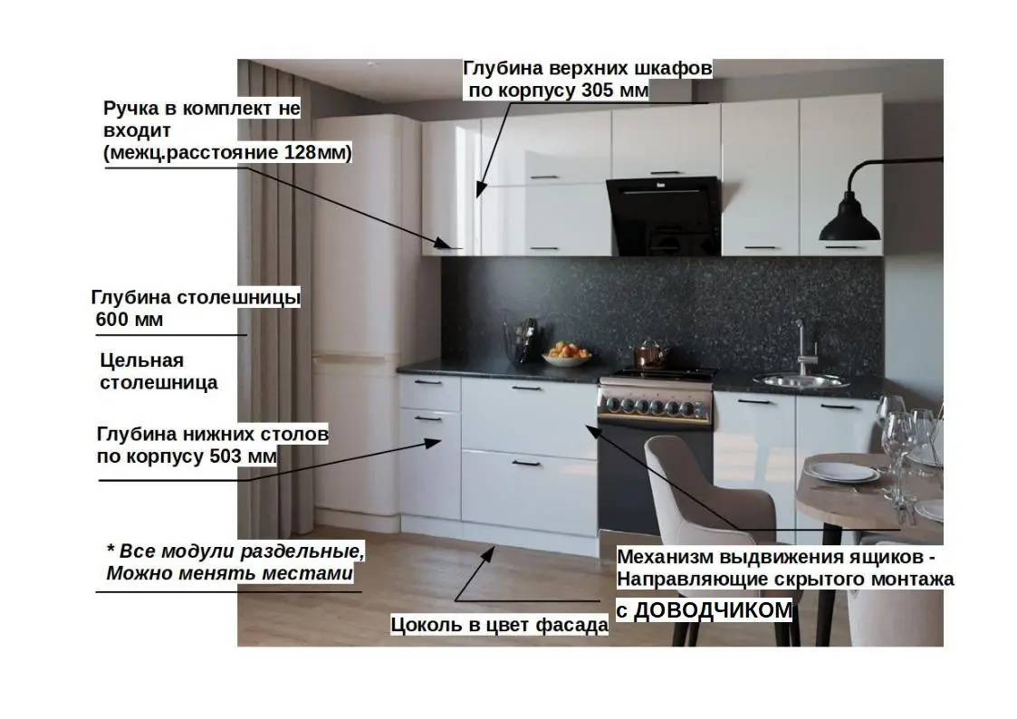 *Дополнительную информацию о том, как купить Кухонный гарнитур Белый глянец-14 (2600 мм) уточняйте у нашего менеджера по телефону +79292022735.