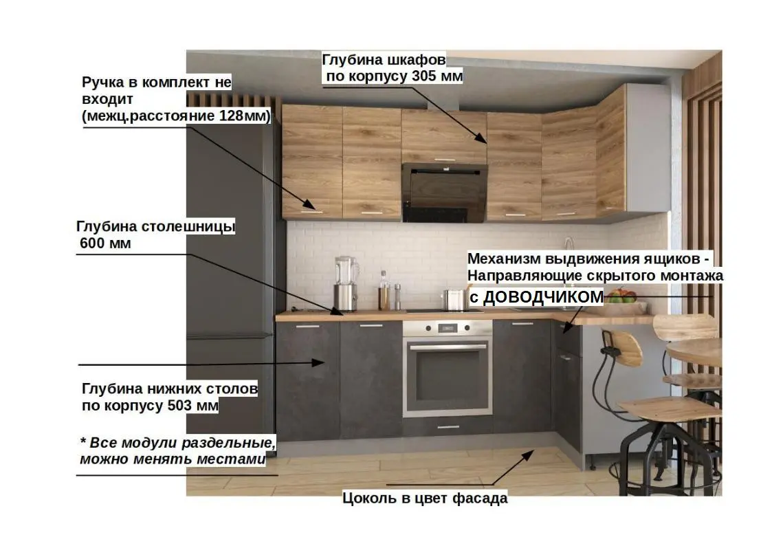 *Дополнительную информацию о том, как купить Кухонный гарнитур ЛОФТ-1 (2400х1200 мм) уточняйте у нашего менеджера по телефону +79292022735.